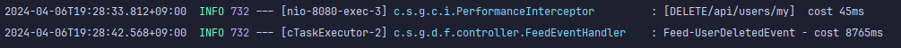 마찬가지의 케이스인 대략 100만건에 대한 삭제 상황에 대해서 9251ms 에서 8765ms로 대략 5% 정도 감소했다. 앞선 테스트에 비해서는 큰 개선은 아니지만, 해당 상황이 여러번 발생한다면 의미있는 수치라고 생각했다.