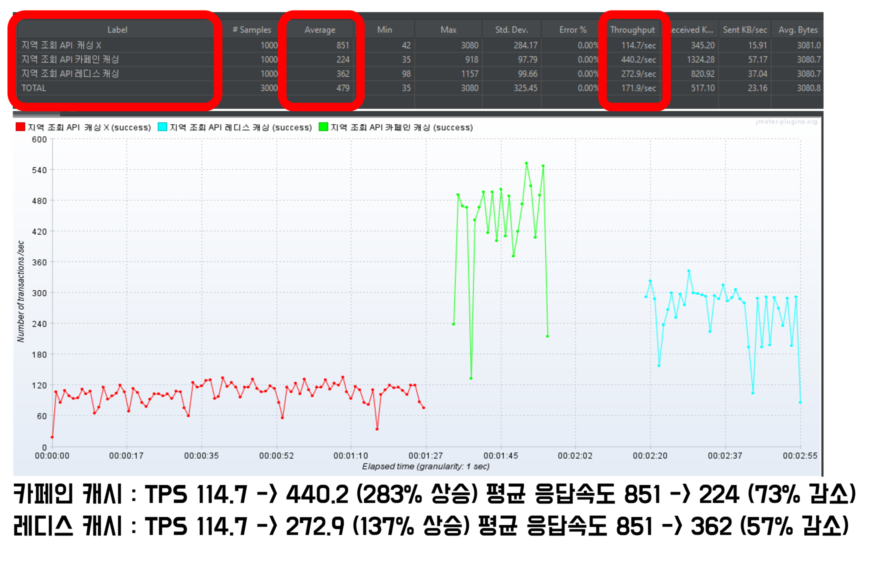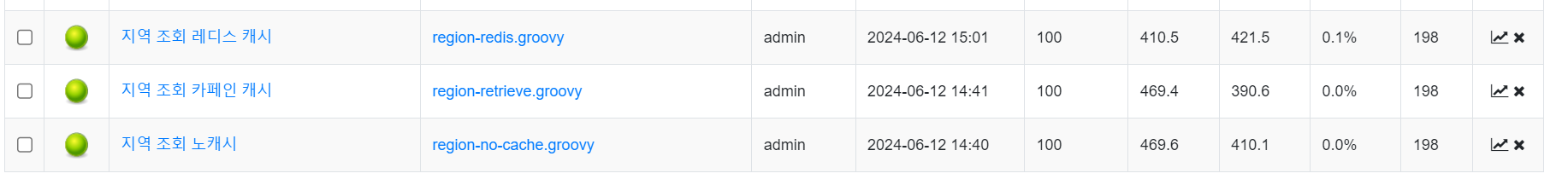 저 상황으로 성능 테스트를 한 결과는 아래와 같았습니다.