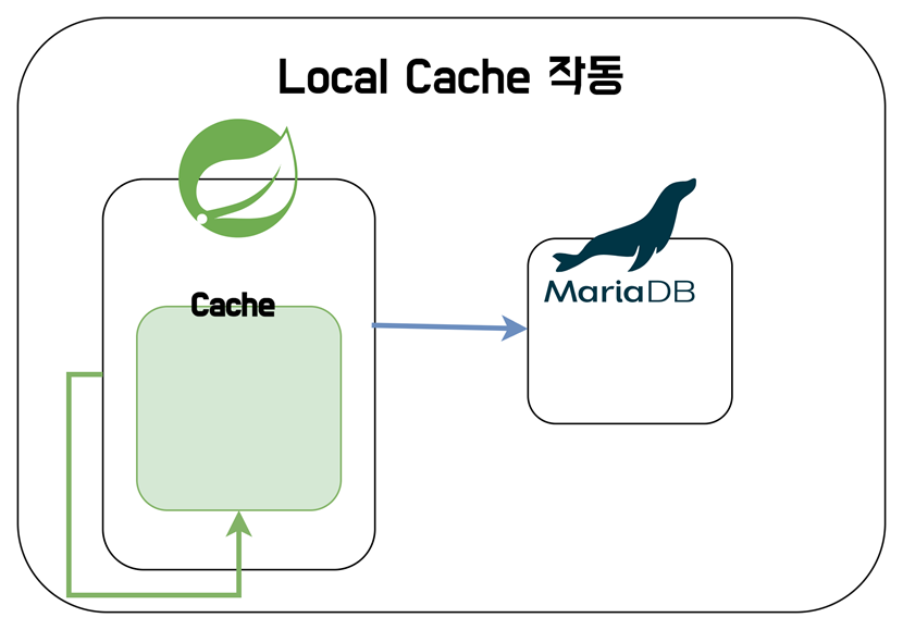 먼저 Local Cache에 대해서 알아보겠습니다. Local Cache는 웹 어플리케이션 서버에 저장하는 캐시라고 생각하면 편합니다. Spring을 사용해서 개발한다면 하나의 프로세스에 저장, 즉 같은 `JVM 메모리`를 사용합니다 (EhCache의 경우 Disk에도 저장할 수 있다고 합니다).