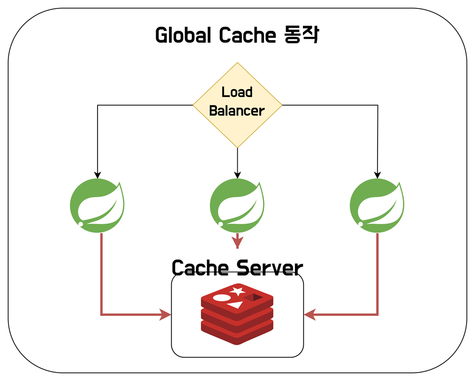 글로벌 캐시의 경우 로컬 캐시의 특징을 반대로 갖는다고 생각하시면 됩니다. 여러 서버 인스턴스가 동일한 캐시 저장소를 통해 일관된 정보를 사용합니다. 이를 통해 캐시의 일관성이 틀어지지 않아 캐시 동기화 작업을 하지 않아도 됩니다.