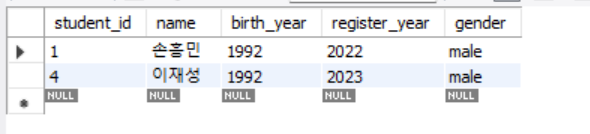 insert into student(name, birth_year, register_year, gender) values('이재성', 1992, 2023, 'male');