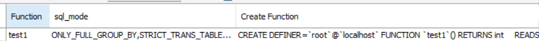 `show create function {함수 이름}` 을 입력해 함수를 생성할 때 주었던 옵션들에 대해서 확인할 수 있습니다.
