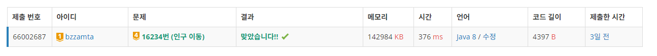 이 문제에서는 2가지 '어떻게 연합을 이루는가'와 '인구 이동 후의 인구수 관리'를 신경 써서 작성하면 큰 어려움은 없는 문제입니다.