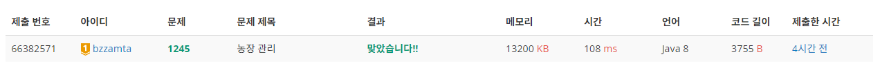 농장관리 문제에서 주어진 조건은 다음과 같습니다.